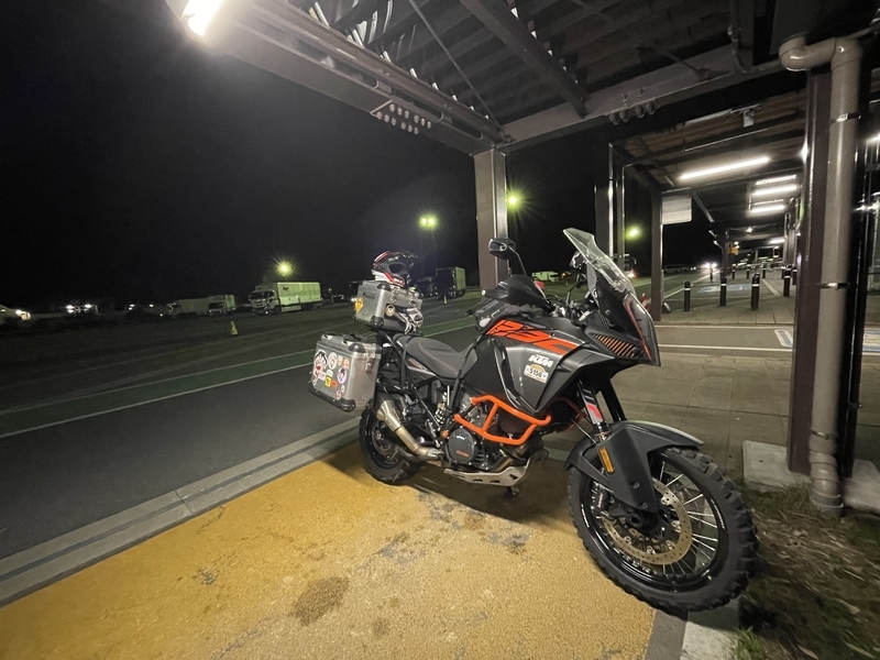 ・22時前に有磯海SAに到着し小休止。この時点で自宅から912km走行していました。